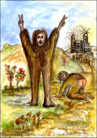 — Origines du Body Art, à réactions insignifiantes, premières expériences du corps d’avant-histoire 2004, 2005. Aquarelle sur papier. 29 x 20,5 cm.