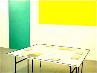 Autant de manifestations de ce souci très pragmatique d’une peinture livrée pour ce qu’elle est — matériellement, concrètement. Or la profusion des déclinaisons possibles que Miquel Mont a su mettre en œuvre — ou non — au long de dix années de recherches sériées prend aujourd’hui la forme d’une sorte d’inventaire : un répertoire, décliné cette fois en carnets qui restituent les traces de projets, de tentatives envisagées, ou d’autres réalisées mais montrées là sous le jour singulier de leur restitution photographique — traces de cette quête prolongée à saisir la peinture en tant qu’élément formel porteur d’un sens foncièrement ouvert autant qu’absent.