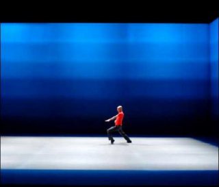 Les rares moments d’équilibre, toujours menacés par le chaos, se situent entre les mouvements de contraction et d’expansion, entre le resserrement de l’espace sur le corps et le déploiement du corps dans l’espace. C’est que, en proie à ses propres pulsions, le corps cherche à fuir en se dispersant à l’extérieur ou au contraire en se recroquevillant. Les bras, les jambes, la nuque et le torse s’hystérisent, se déploient au dehors ou se replient sur eux-mêmes. En retour la musique, les couleurs et la lumière changent, car l’espace « n’existe pas de manière indépendante, mais (…) naît de la relation entre différentes énergies ». (Saburo Teshigawara)
