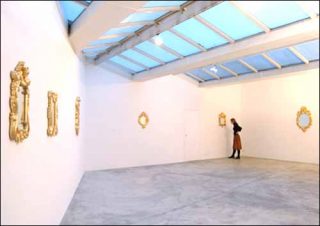 Les miroirs de l’artiste bulgare Nedko Solakov sont autrement plus déconcertants. Sept miroirs, placés dans d’opulents cadres dorés, disposés en vis-à -vis dans la galerie, ne reflètent que la blancheur des murs. En s’approchant, on peut cependant apercevoir quelques mots inscrits en anglais sur le bord intérieur du cadre : « Puis-je voir votre dos, s’il vous plaît ? Je suis un miroir très sophistiqué et je suis fermement opposé à servir votre visage ordinaire. Néanmoins restez dans le coin au cas où je changerais d’avis. »