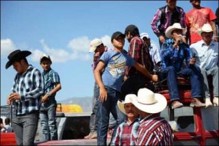 Le langage corporel, les gestes de complicité et de rivalité, constituent le point focal de la série en progrès «Boyzone», par le biais de laquelle l’artiste analyse les rituels masculins. Pour le nouveau chapitre à découvrir lors de l’exposition (Boyzone–Rancheros, 2015), Clarisse Hahn a filmé et photographié des hommes vivant dans le désert sacré de Wirikuta au Mexique.
