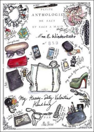Avec son projet de Petite Anthologie de sacs et sacs à main, (1998-) l’artiste franchi un autre pas. En invitant le visiteur à vider son sac elle en dévoile le contenu qu’elle retranscrit au moyen du dessin et de l’aquarelle. Le recueil des 1001 sacs qu’elle souhaite rassembler provient d’un réel désir de communiquer et de rentrer dans l’intimité de la personne qui lui a déballé son sac. Une publication viendra éclairer ce travail mené depuis quinze ans.