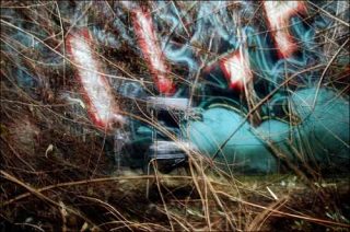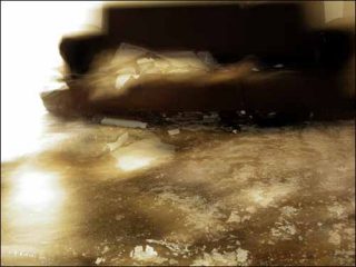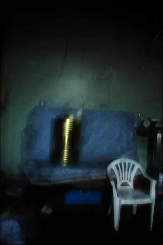 Les images proposées ont alors procédé d’une vision « altérée » du réel, s’éloignant radicalement de toute objectivité, favorisant ainsi une approche empirique. Le dispositif photographique (mouvement de l’appareil photographique, temps de pose long et utilisation du flash) rendait les choses incertaines, un peu tangibles. L’utilisation et le dosage du flash venaient fixer certains éléments du cadre ébranlés par le bougé de l’appareil photographique, en même temps qu’il en laissait d’autres vagabonder plus librement, dégageant ainsi des formes du désordre ambiant, de son organisation. L’usage de ce procédé systématique m’a ainsi permis de retranscrire cette expérience propre du lieu.