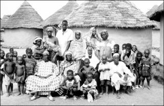 — Mamadi Ba et ses deux femmes au village. Tirage argentique 30 x 40 cm.