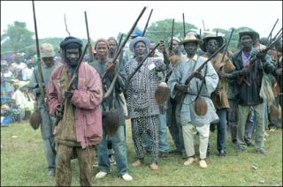 — Les pas de danse des chasseurs Fête de l’Indépendance du Mali , 22 septembre 1999. Cibachrome, 50 x 60 cm.
