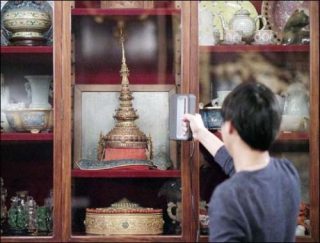 La première vidéo réalisée par Rungjang montre les somptueux décors du château et la mise en scène des collections dans une sombre lumière d’hiver. Elle est accompagnée par un commentaire de Pierre Baptiste, conservateur en chef du musée Guimet. Tandis que ce dernier se livre à un tour d’horizon de l’histoire des relations franco-siamoises, tout en évoquant les questions de nature des cadeaux diplomatiques et de la présentation des collections, un jeune homme visite seul les salles du musée, jusqu’à parvenir à la réplique qui est exposée dans les salons de l’impératrice Eugénie. Se plaçant devant la vitrine abritant la couronne, il scanne celle-ci avec un petit scanner 3D portatif.