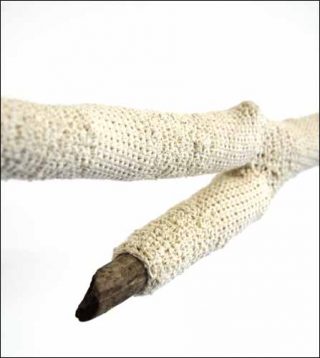 — Aurélie Mathigot, Extrêmités, 2007-2008. Crochet, tricot, techniques mixtes. Collaboration avec des ateliers de femmes du Brésil, de France et du Mexique.