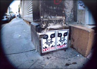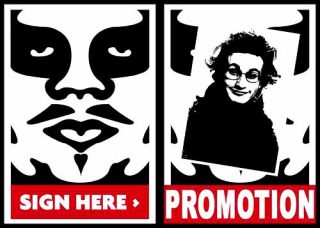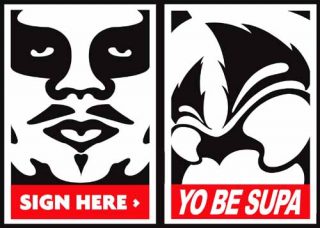 J’aime beaucoup le travail de Shepard Fairey, mais au-delà de l’intérêt que je lui porte, il y a l’envie de provoquer tous les gens du «street art». Le but de la manœuvre est d’attirer l’attention. Les réactions sont positives ou négatives, mais l’enjeu est ailleurs, ce qui compte c’est que l’on remarque ce travail. Les gens sont choqués ou amusés par ce détournement, mais ce qui est important, c’est qu’ils en parlent. Le soucis d’efficacité est ce qui prime dans ce type de détournement.