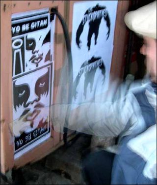 J’aime bien déranger. Continuer à utiliser Yo Be Gitan comme un slogan participe à distiller du poil à gratter dans cet univers. Utiliser la figure de Michaël Youn permet de prendre à contre-pied les critères de l’art urbain. Ce n’est pas un personnage que l’on s’attend à voir sur les murs. Il est très connu mais surtout, il n’appartient pas au monde de la rue. En me servant de lui, je parviens à provoquer le petit milieu du «street art». C’est dans ce même soucis que j’ai utilisé l’image de Jérémy Chatelain, de la Star’ Ac. Ça a le don d’embêter les gens du graffiti, et j’adore ça.