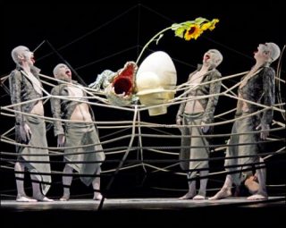 Sur le plateau, qu’une immense toile d’araignée recouvre, la compagnie semble un corps uniforme parsemé de soubresauts.