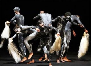 1913-2013: un siècle, cent ans et autant de guerres, dans lesquelles l’Occident fut impliqué, ont occupé le monde. Augurant une trilogie de spectacles explorant les relations entre chorégraphies et histoire, Eszter Salamon présente sa nouvelle pièce, Monument 0: Hanté par la guerre (1913-2013). La chorégraphe plasticienne utilise la danse comme outil de recherche et de compréhension du monde; elle travaille à partir des danses folkloriques, tribales et populaires pratiquées dans chacune des zones de conflits concernées. Sur une scène jonchée d’un fauteuil à bascule, de masques à gaz, d’os et de sang, six interprètes parés de masques guerriers se livrent à une danse macabre. Cette allégorie médiévale exprime l’universalité de la mort. Pour Eszter Salamon elle peut aussi cerner les limites de la modernité. La chorégraphe fait écho à l’histoire de la danse: si 1913 sacre une «bascule» artistique, avec les créations du duo Stravinsky/Nijinski et la Roue de bicyclette de Marcel Duchamp, elle scellera la fragmentation durable des Balkans, avec la signature du Traité de Londres induisant des situations durables de belligérance.
