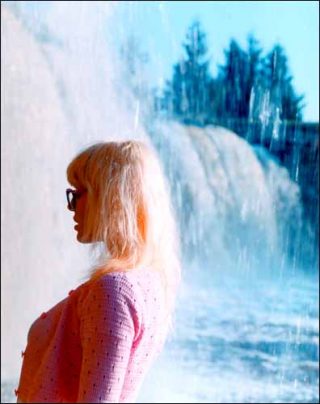 Si l’artiste préférait jusqu’alors l’usage de la couleur, si apte à restituer l’atmosphère lumineuse des forêts norvégiennes, cadres de nombre de ses mises en scène (White Series, 2000 et Nudist Series, 1999), ici les éclats variés et colorés laissent place à la sobriété de noirs mats, de gris perlés ou de blancs brumeux. La série, composée de divers formats, régulièrement répartis sur les quatre murs de la galerie, réhabilite en effet tout le charme presque sévère du noir et blanc, redoublé par la blancheur de l’encadrement. Seule note teintée, le mur de gauche a été recouvert d’un papier imprimé, reproduisant un ciel bleu parsemé de nuages…