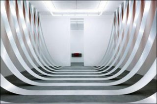 Dans cette exposition, au Crac de Sète, j’ai crée trois double mouvements. Un premier mouvement du regard au travers des trois salles: de Swing à Block. Le regard est d’abord amené vers le haut avec Swing, puis dans la seconde salle, il descend à hauteur de vue avec Roll, puis le regard finit ras le sol avec Bubbles.