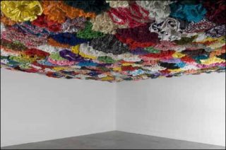 À travers l’installation d’un millier de robes de flamenco suspendues au plafond, dans Todo de offrandes (Toit d’offrandes), sous lesquelles déambule le visiteur en levant ses yeux vers les dentelles multicolores, c’est une tradition populaire andalouse à laquelle l’artiste fait référence, une tradition où les femmes font offrande, au cours d’une cérémonie, de leur plus belle robe, à la Vierge pour la remercier d’une intercession, robes qu’elles suspendent au plafond. La place de la femme dans la culture espagnole, la domination masculine, ou encore les réminiscences de la période franquiste sont les aspects abordés aussi par les autres œuvres.