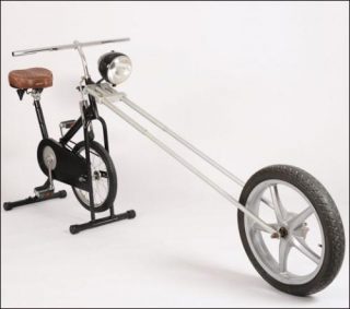 Kevin Laisné interroge, quant à lui, la fonctionnalité de l’objet, sa matière, sa forme et son statut. Il cherche à casser sa fonction première en modifiant sa composition. Pour «Motopoétique», il présente une installation en diptyque, Chopper d’appartement. Ses œuvres mêlent l’esprit libre des «american choppers» et des machines de sport d’intérieur (ici un vélo d’appartement), et jouent sur le contraste existant dans la représentation de ces «choppers», entre mobilité et statisme, liberté et sédentarisation.