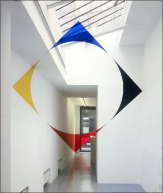— Felice Varini, Carré bleu noir rouge et jaune au disque blanc, Paris, 2011. Dimensions variables