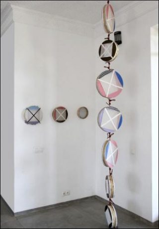 «Se plaçant au-delà de «l’objet spécifique» — pour utiliser le terme de Donald Judd — des années soixante, qui n’était ni peinture, ni sculpture, mais quelque chose entre les deux, les tambourins de Scoli Acosta sont autant des peintures que des objets fonctionnels, détournant l’héritage de la peinture moderne vers le domaine du quotidien, du portatif, du percussif. (…)