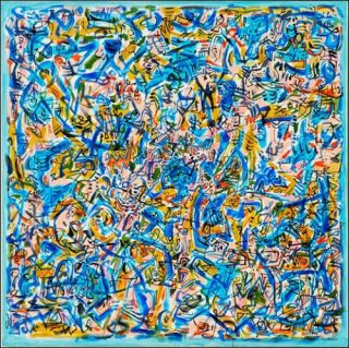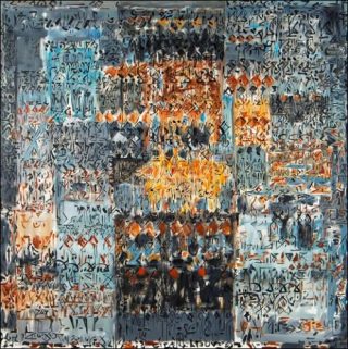 «Ce que l’on distingue d’abord dans sa peinture, c’est bien sûr le signe. Sa répétition. Sa résonance comme s’il s’agissait d’un chant incantatoire. Mais le propos de Mahjoub Ben Bella n’est pas d’illustrer ou de suivre les traces illustratives d’une quelconque calligraphie arabe. Non! Il en traduit simplement une musicalité qui trouve son rythme aussi bien dans le trait que dans la couleur. La partition s’égrène de part en part, lancinante et vibrante de tous les sons. Bousculant le silence de la monochromie, il couvre la toile jusqu’à l’excès, la frappe du sceau de ses croches, l’embellit de tonalités chantantes. Il la transporte dans une abstraction syncopée et linéaire. Dépassant parfois cette simple tonalité, il tente de nous perdre dans le bruissement même de la vie, dans des paysages frémissants, des stridences retenues. Connu pour ses fresques routières dans le nord de la France, Mahjoub Ben Bella a recouvert de ses signes 12 kilomètres de pavé. Dans ses toiles, il compose des champs sacrés dont les sillons nous entraînent au-delà du simple lyrisme. Il se laisse posséder par le vertige de l’écriture jusqu’à l’extase. Jusqu’à devenir le chantre d’un livre de prières à la gloire même de l’art.»