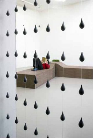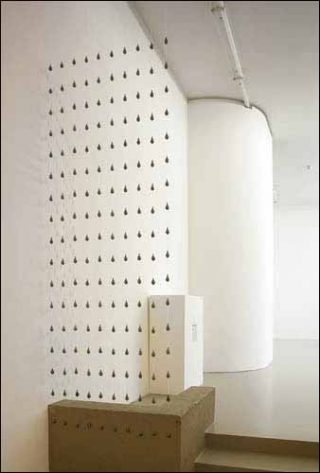 — Concrete Tears, 2006. Ciment et fils. Dimensions variables. Vue de l’exposition à l’Institut d’Art Contemporain, Villeurbanne, France.