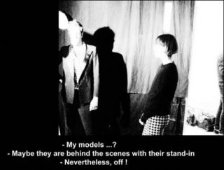 Les images projetées sont fragmentées: les visages, les gestes, les intentions sont déstructurés dans l’espace. Des moments «off», hors du script, composant un hors-champ sont captés par l’œil d’une caméra omnisciente: des temps d’expérimentations mais aussi de courts instants entre deux prises où les acteurs s’interrogent, attendent, grimacent, se concentrent ou se relâchent, inconscients d’être filmé.
