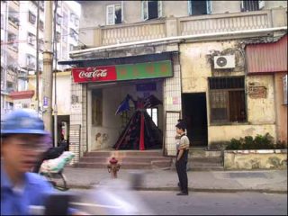 — Beijing Bitch, 2002. Impression sur tissu, bois. 340 x 246 x 304 cm.