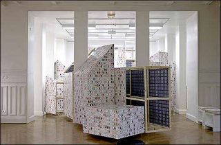 La nouvelle peau métallique forme une matrice artificielle. La pose à la fois méticuleuse et systématique de cette peau renvoie au tramage des cartes à jouer et aux trous directement percés dans le mur.