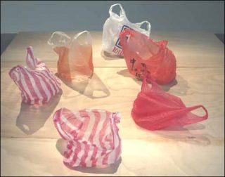 — La fragilité du vide, 2008. Six sacs plastiques. 35 x 45 x 45 cm le sac.