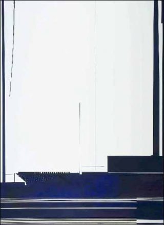 Sous la verrière de la galerie Ghislaine Hussenot des paysages contemporains, de lignes droites et plages uniformes, disputent l’espace au plexiglas fluo. Grandes toiles pour grand espace nu. Une installation glaciale pour des toiles qui évoquent un univers numérique, où la formalisation des systèmes est totale.