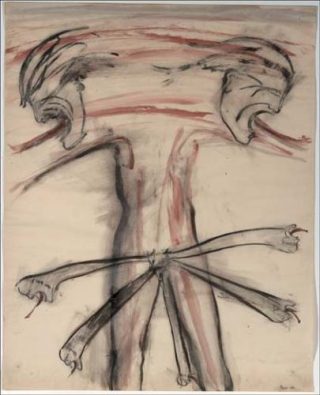 Bien souvent l’oeuvre n’est pas parole, mais cri. Un cri articulé, tel qu’il fait surface dans l’oeuvre sombre de la fin des années 1950: Les Anges, Merde, Fuck You.