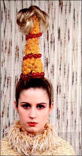 Une attention est accordée aux moindres détails des compositions alimentaires dont l’effet est de réduire la femme à une gourmandise à dévorer des yeux. Et il y en a pour tous les goûts. Froide beauté des femmes de l’Est aux cheveux perlés de grains de caviar, ou exubérante joie de vivre des femmes des îles qui portent sur leurs têtes des ananas et des cerises confites. Autant de fantasmes et de stéréotypes exprimés par l’artifice alimentaire.