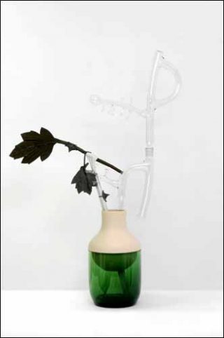— Artificial Vase (base verte en verre), collection « Natura design magistra », 2009. Céramique, tissus, verre soufflé, bois, résines.