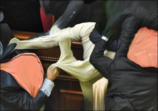 Dans La maison dépressive de la politique, cette main entre le dehors et le dedans ne s’accommode pas de la situation. Elle est la main qui dessine pour se révéler contre le mur des réalités assemblées. Le désir d’affranchissement est dans cette rencontre entre l’écriture et l’image. Cette main n’est pas métaphore de la parole, elle est un «mot–chose», soutenue par une colonne sans fin pour nous dire que le temps de l’attente est fini.