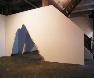 — New Found Land, 2009. 3 murs en plaques de plâtres découpées.(env. 400 x 650 x 190 cm).