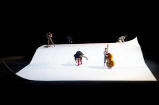 Spectacle étincelant et dur comme un diamant noir, Baron Samedi s’inscrit dans l’esprit de transmission qui fait l’âme du programme New Settings. Page blanche largement déployée, l’installation conçue par la plasticienne Nadia Lauro propose à Baron Samedi une éloquente aire de jeu. Pentue, cornée, ourlée, immaculée mais diabolique, elle précipite dans les abîmes de la déchéance ou conduit aux vertiges de la domination. Elle est une partition, une vague, une voile, la proue d’un navire, peut-être négrier, c’est l’offre de tous les possibles pour n’en choisir aucun… «Mais les marges aussi sont importantes», dit encore Alain Buffard…
