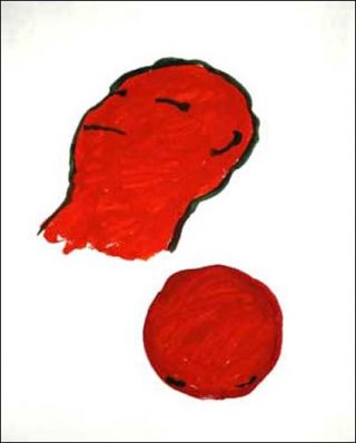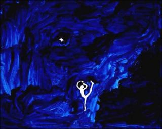 Ici un minuscule bonhomme laissé en réserve sur la feuille se perd au milieu d’un bleu outremer appliqué rapidement au pinceau. Une étoile pourtant représentée à portée de ses mains reste inaccessible. La touche enlevée semble plonger le personnage dans un tourbillon sans fin. Ce Petit Prince d’un autre temps se retrouve perdu au milieu des autres protagonistes que Koo Jeong-A met en scène.