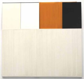 Viennent ensuite les compositions monumentales opposant à la légèreté de l’effeuillage un caractère beaucoup plus physique. Imposantes, massives, de grosses cassettes monochromes montées les unes à côté des autres servent de socle à de fins panneaux.