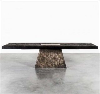 Ingrid Donat et Rick Owens présentent deux créations en bronze: Cisco, un buffet singulier dans le plus pur style de l’artiste franco-suédoise et Plug Table, une table juxtaposant bronze et contre-plaqué.