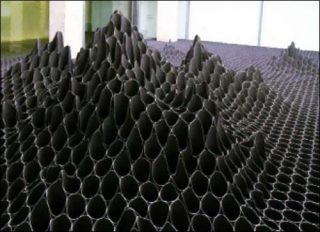De l’adéquation entre l’espace occupé et le volume proposé naissent des résonances qui sollicitent la sensibilité du spectateur. Celui-ci, happé par le jeu des surfaces, des vides et des pleins, fait l’expérience d’un paysage simulé dont l’échelle oscillerait entre l’infiniment petit et le gigantisme assumé.» (Claire Taillandier)