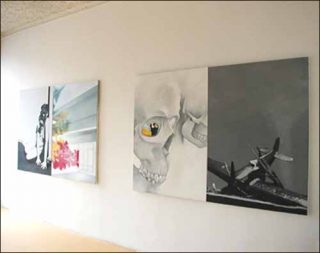 Ce sont des diptyques dont les sujets sont des reproductions assez fidèles de photographies d’installations, de détails de ces installations ou performances… Chaque partie du diptyque représente une œuvre différente ou un détail de cette œuvre dans son espace d’exposition…
