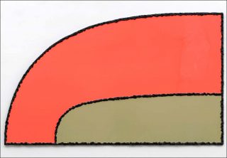 La série «Terre-Plein» rejoint cette réflexion, mais du point de vue de l’industrie. Cette série est composée de peintures-sculptures dont une base est posée au sol comme si elles s’en détachaient. Leurs couleurs plastiques, industrielles et brillantes, sont entourées de sortes de tortillons noirs partiellement décollés sur les bords. Des tensions s’exercent entre surface et dimension, entre ce qui cache et ce qui se montre. La surface lisse et colorée contraste avec les tortillons noirs sur lesquels on reconnaît des irrégularités, empreintes de doigts ou témoins du souffle qui les a gonflés, et qui sont les irrégularités même de l’inspiration, de l’humanité du geste fondateur.