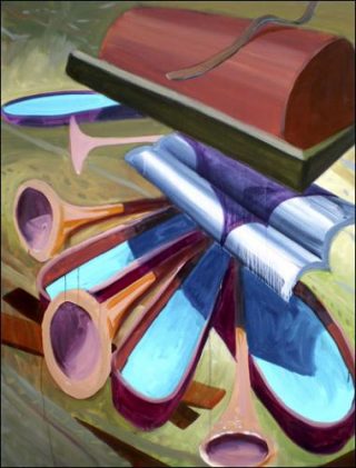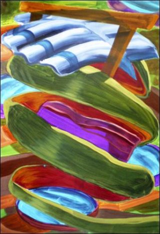 L’univers de ses peintures c’est celui de la décharge, des rebuts de notre société. On pourrait parler à leur propos d’un compost urbain où la couleur vient gonfler les formes, ouvrir de l’espace dans le corps même des choses.