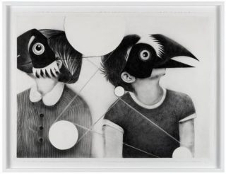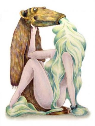 Hippolyte Hentgen est un duo d’artistes composé de Gaëlle Hippolyte et de Lina Hentgen dont le nom est à la fois l’association et le raccourci de leurs deux noms, mais aussi la création d’une troisième entité qui représente leur travail commun. Dans cette invention de personnage se trouve toute la base de leur travail qui puise dans le dessin animé ou la bande dessinée des années 1930, Oyvind Falström, la culture alternative des États-Unis et les arts graphiques (Robert Crumb, Mike Kelley…), la peinture du XVIIIe siècle, le graphisme des affiches d’entre-deux-guerres, George Herriman, l’art outsider et bien sûr l’art moderne.