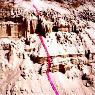 Nils-Udo déploie en effet un vocabulaire plastique qui ne nécessite ni violentes saignées dans le territoire, ni déplacement de terrain considérable. Derrière l’apparence de leur fragilité matérielle, ses œuvres sont ici au plus près des forces telluriques et ésotériques de la nature, déclinées notamment à travers la figure archétypale du nid (Nid rouge, 1999 ; Red Rock Nest, 1998).