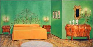 — La grande chambre verte, 2007. Huile sur toile, triptyque. 195 x390 cm.