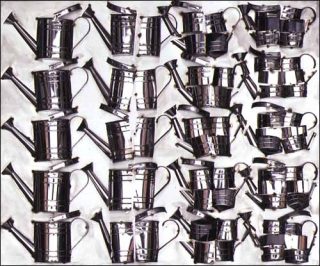 — Sans titre, 1999. Fragmentation d’arrosoirs recomposés sur panneau de métal. 120 x 145 x 12,5 cm.