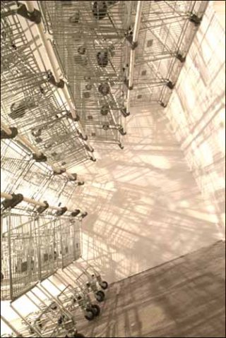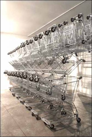 — La chute des courses, 1996. Accumulation de chariots de supermarché. 345 x 433 x 115 cm.