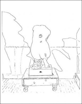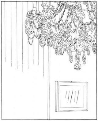 Louise Lawler propose pour l’exposition «No Drones» un ensemble de vinyles noirs et blancs directement produits à partir de certaines de ses photographies iconiques. Tracés par le créateur de livres pour enfants Jon Buller, ces différents panneaux — telles de grandes planches de coloriage dans l’attente d’être complétées — permettent à Louise Lawler de mener plus loin le principe d’appropriation présent dans toute son œuvre.