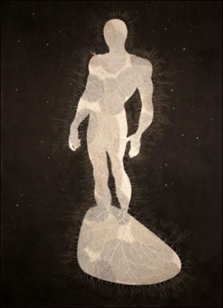 En majesté, un personnage, super héros tout droit sorti du Panthéon de l’artiste focalise l’attention: Le surfer d’argent, Norrin Radd. Norrin Radd est investi d’un fabuleux pouvoir cosmique, qui transforme sa peau en une substance indestructible à l’aspect métallique et à la couleur argentée, il évolue sur un véhicule supraluminique dirigé par la pensée, composé de la même matière indestructible argentée que son corps, et à l’apparence d’une simple planche de surf. Ce moyen de transport vaut à Norinn Radd le surnom de «Surfer d’argent».