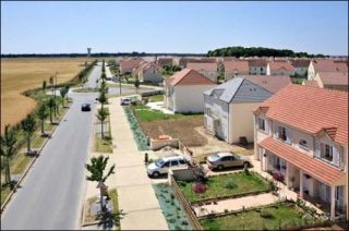 Ce sont des foules que l’on logerait volontiers dans les lotissements pavillonnaires photographiés en Ile-de-France par Jean-Pierre Attal. Dans la série Intra muros, les cubes standardisés qui composent ces banlieues évoquent un désert humain qui guette le désert symétrique des plaines céréalières.