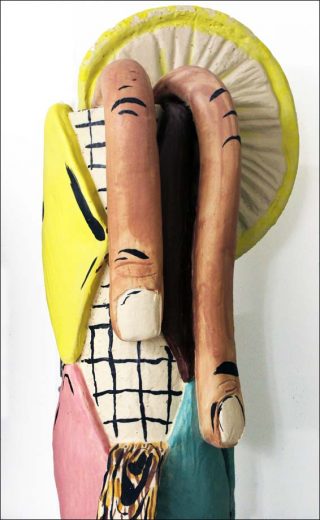 Les principes de l’Arts & Crafts guident la démarche artistique de Florentine et Alexandre Lamarche-Ovize qui n’hésite pas à franchir la limite qui la sépare de l’artisanat. Leurs œuvres, presque entièrement réalisées par eux-mêmes, reposent sur le savoir-faire, la création manuelle, le goût de l’objet et le croisement. Ce croisement, qui est celui entre art et artisanat, est aussi croisement des médiums, des matériaux, des supports, des styles, des références et des sujets. Ainsi leurs dessins, peintures et céramiques intègrent souvent des éléments issus du quotidien tels que des représentations de mégots, de chiens, de fleurs et plantes, de vases, de chaussures ou de visages connus. L’œuvre hybride entre dessin, peinture et collage intitulée Tosarah (Kurt et Louise) intègre des représentations de donuts, de fragments de cactus, des chevelures sans visages et des reproductions griffonnées de portraits célèbres de Louise Michel et de Kurt Cobain.